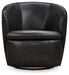 Experience the perfect blend of well-appointed comfort and stylish design with this swivel accent chair. Its supple leather and barrel back invite you to settle in and relax, while the sleek 360-degree swivel base keeps you engaged with conversations. Designed with functional luxury in mind, it’s the ideal fit for your contemporary lifestyle.