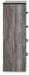 Alluring smoky gray hues create an ambiance that just feels right. This 4-drawer chest has a charming wood-like appeal enriched by a two-tone, textured look. Light neutral shades contrasted by a dark charcoal finish bring a refined yet relaxed feel to contemporary decor and a sense of serenity to your space.