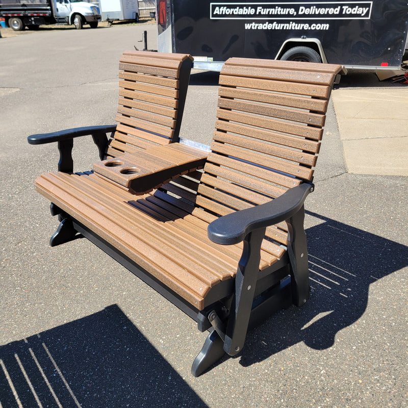 Order with any of our backs EXCEPT low back fan. Flip up center console with drink holders. The 5' Glider with a flip-up console is a versatile cho...