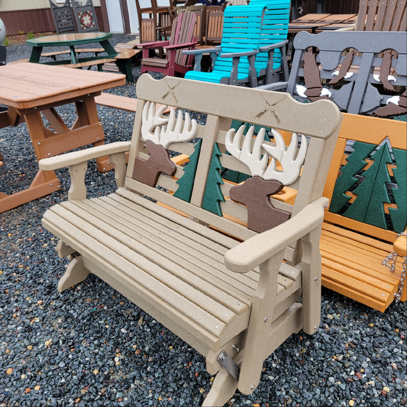 With end tables. Customizable The 4' Glider Bench comes with end tables, providing both comfort and convenience in one elegant piece. Outdoor