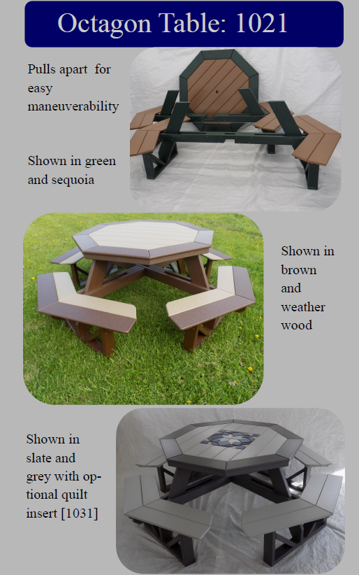 Unit is in 3 joined sections for easier moving. Will be a staple of any home or cabin for generations! Our Octagon Picnic Table, designed to comfor...