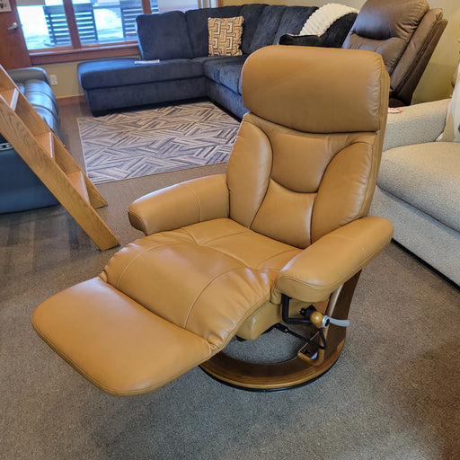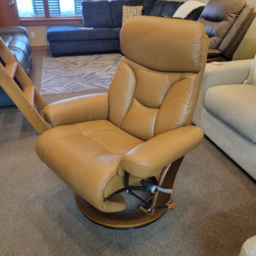 BenchMaster Leather Emily Swivel Recliner w/ Tuck Under Ottoman