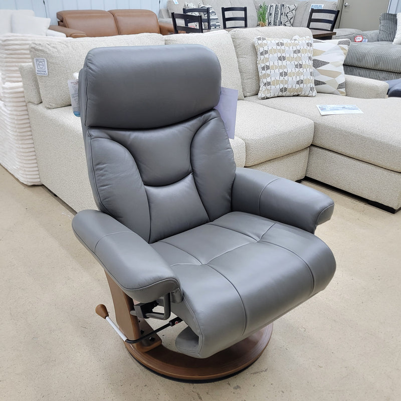 BenchMaster Leather Emily Swivel Recliner w/ Tuck Under Ottoman