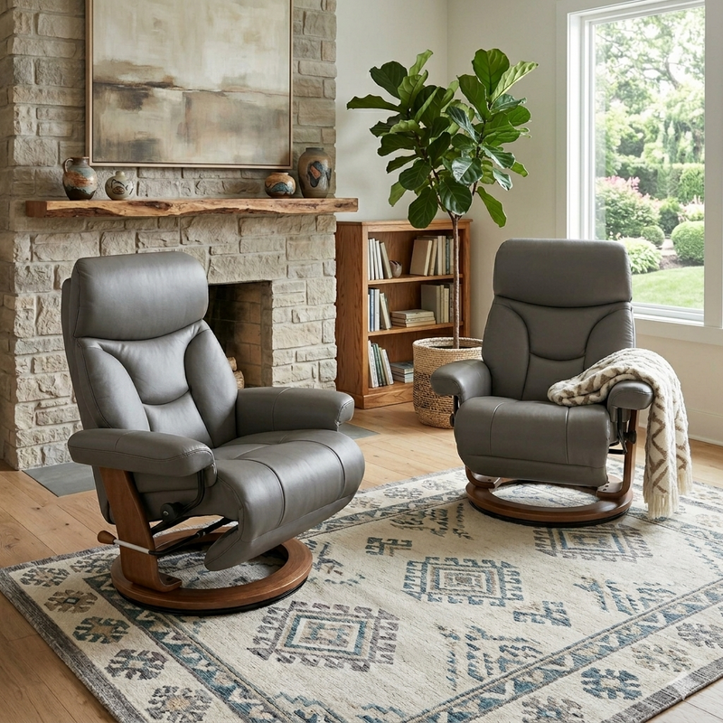 BenchMaster Emily Leather Swivel Recliner W/ Tuck Under Ottoman Set of 2