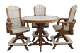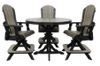 4pc Bar Height Poly Outdoor Dining Set with (3) Swivel Chairs. Made of all weather poly material. More chairs can be added.