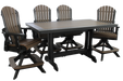 Rectangle Trestle Pub/Bar Height with Lumbar Fan Quadrat Swivels. Shown in Black & Brazilian Walnut - Made of poly all weather material.