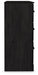 With its clean-lined look and modern attitude, this dresser is a fresh style awakening. A warm charcoal hue over replicated oak grain easily complements other furniture finishes. Smooth drawer fronts with antiqued pewter-tone handles complete the aesthetic.